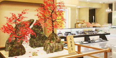 銀座本店や国内の主要直営店舗、海外店舗のご案内、工芸菓子や四季折々の風情を伝える日本文化の一旦を担う