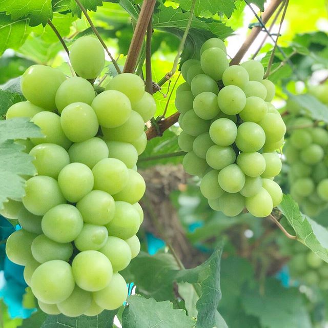 本日(5/31)源吉兆庵農園でマスカット・オブ・アレキサンドリアの初収穫を行いました。