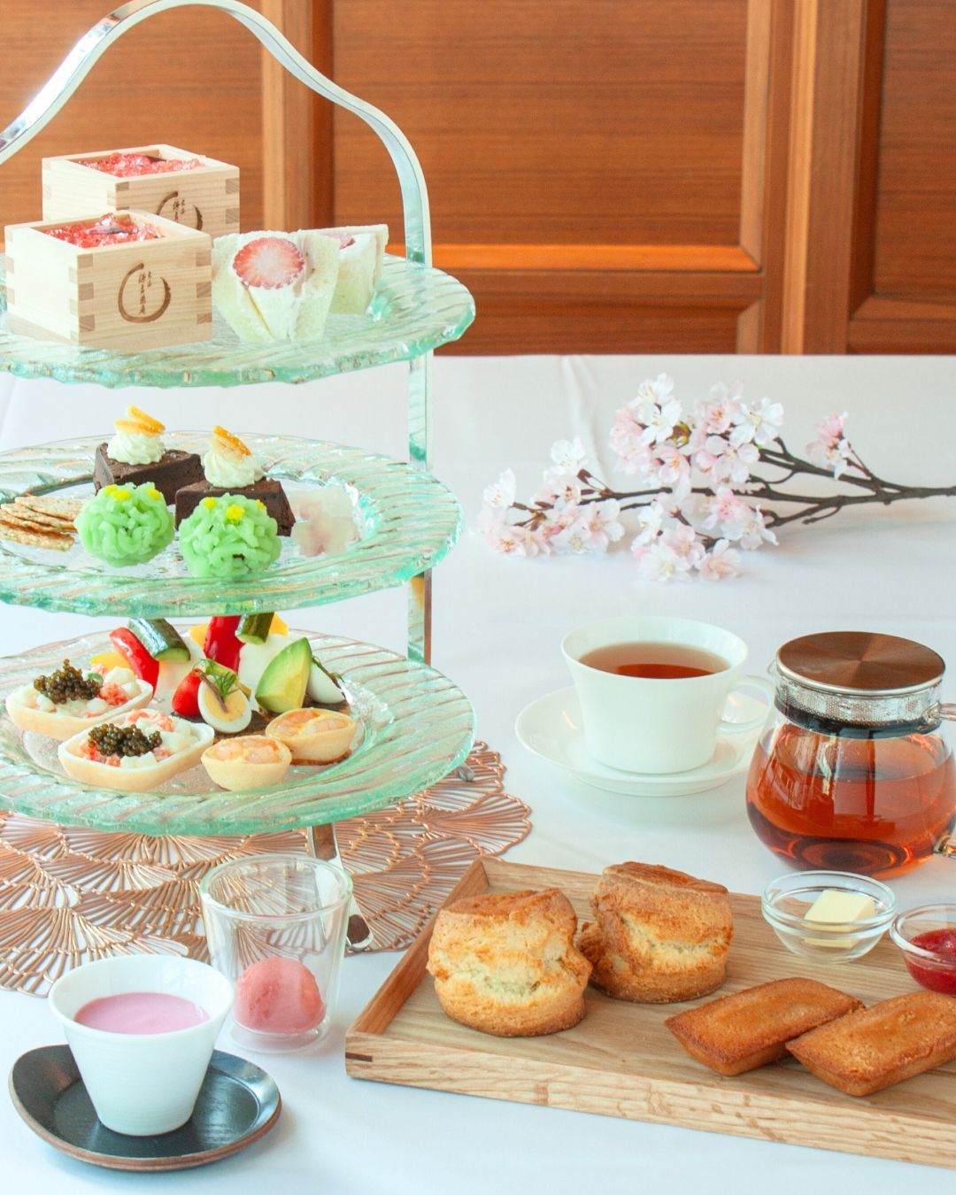 宗家 源 吉兆庵特製の餡と一緒に食べる桜のパンナコッタやアフタヌーンティーオリジナルの上生菓子など、春らしい限定スイーツをご用意いたしました。