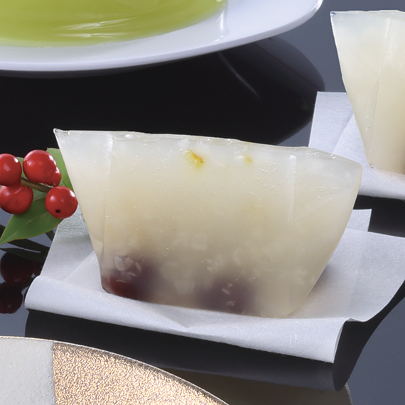 大納言かのこ豆ときざみ柚子をちりばめた道明寺羹です。 ※単品販売はございません。