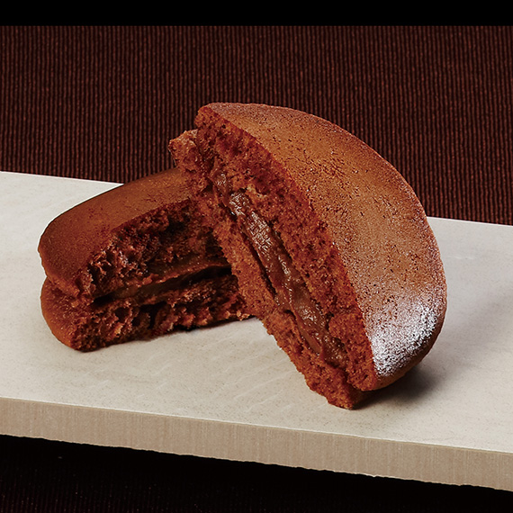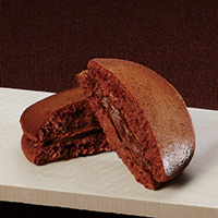 なめらかなチョコレートクリームを挟んだ、ふんわり食感のどら焼き。