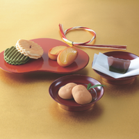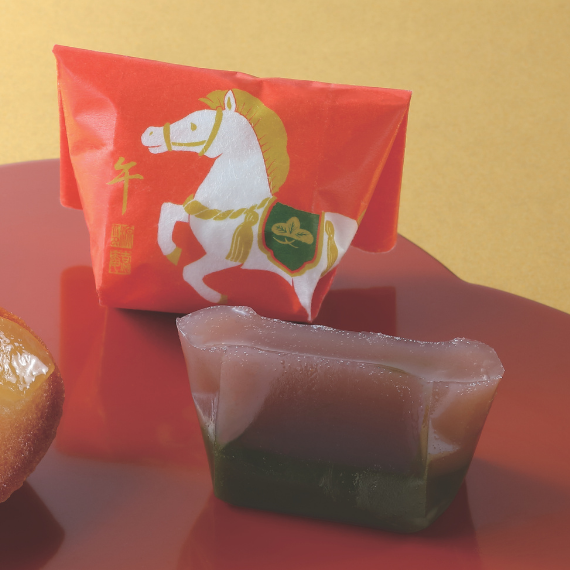 香り豊かな抹茶羊羹に、白あんと小豆こしあんを練り合わせた半小豆羊羹を重ねました。